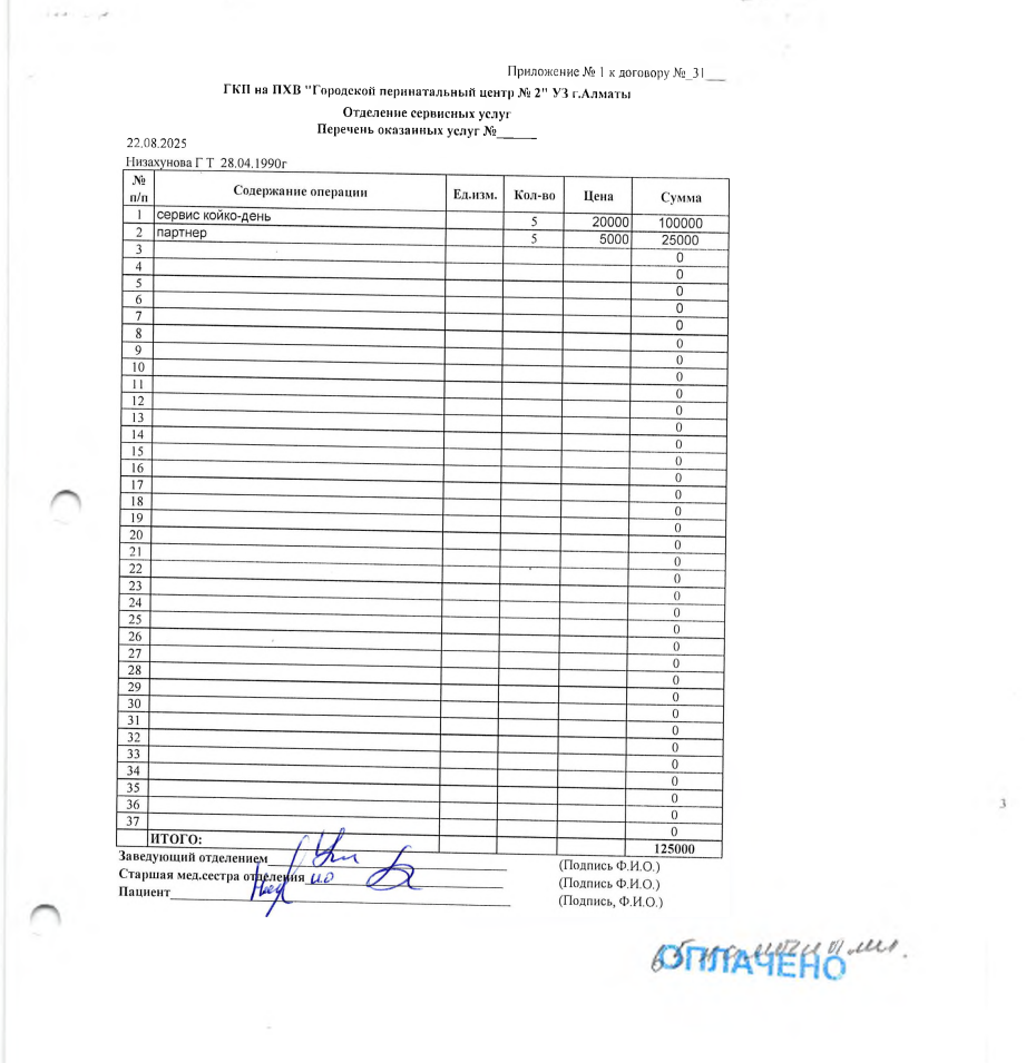 «Әйел босанар алдында ақылы бөлімде босануды таңдады. Бізде олардың төлеген түбіртектері де бар, келісімшарт та бар. Ондай ақылы бөлім барлық перзентханада бар. Олар өздері келісімшартқа қол қойған».