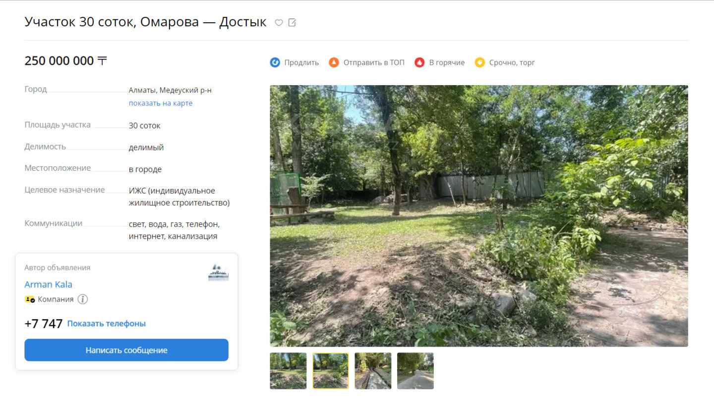 «Қазір учаске азаматтық-құқықтық мәміле негізінде жеке тұлғаға тиесілі: 2018 жылғы 27 қыркүйектегі сатып алу-сату шарты. Ауданның егжей-тегжейлі жоспарына сәйкес учаскенің көп бөлігі Тереңқұр өзенінің су қорғау белдеуінде орналасқан, онда тұрғын және коммерциялық нысандар салу көзделмеген» делінген әкімдік жауабында.