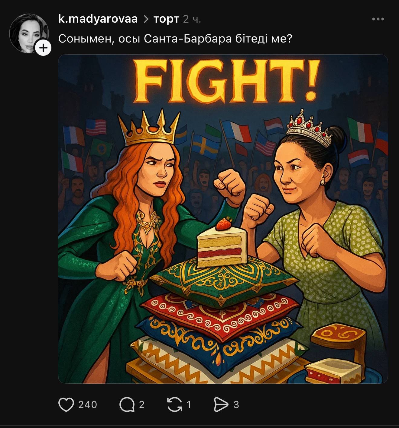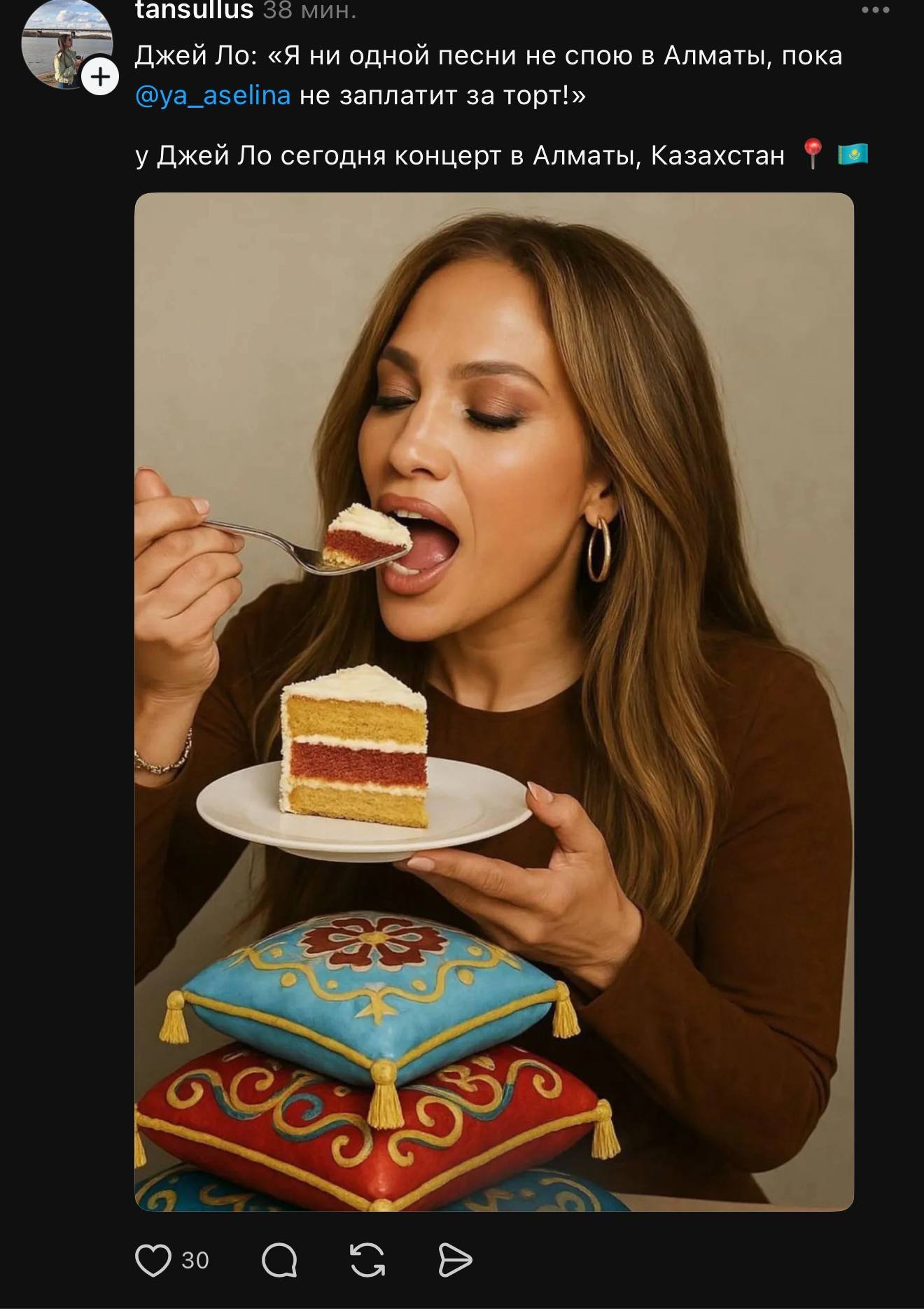 Кондитер Нұршат Ақбергенова белгілі блогер Әселина Батырға жасаған торты үшін ақы ала алмағанын мәлімдеді, деп хабарлайды Orda.kz.