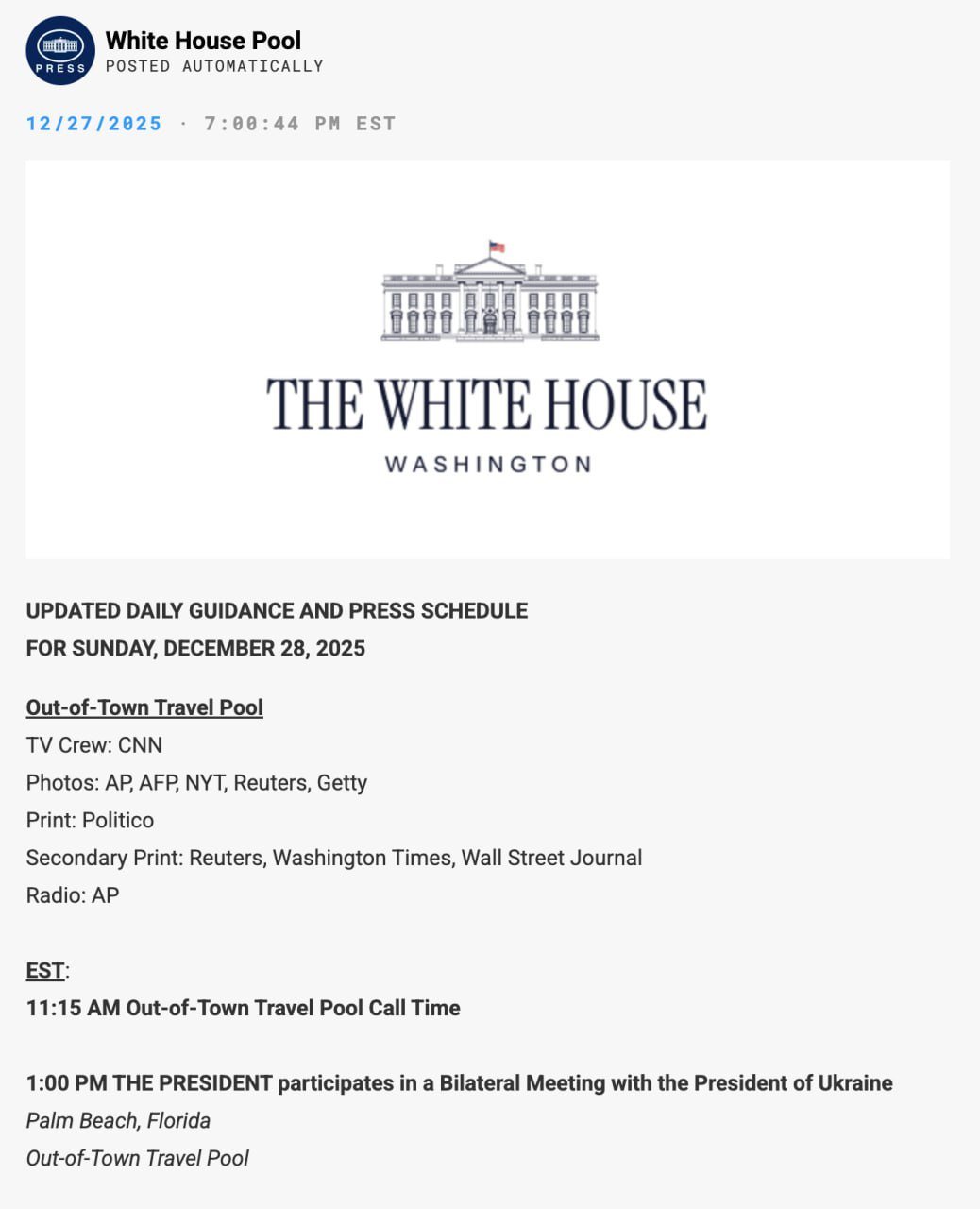 Еске салсақ, екі күн бұрын Зеленскийдің кеңсесі оның Трамппен кездесуі 28 желтоқсанда Флоридада өтетінін растаған еді.