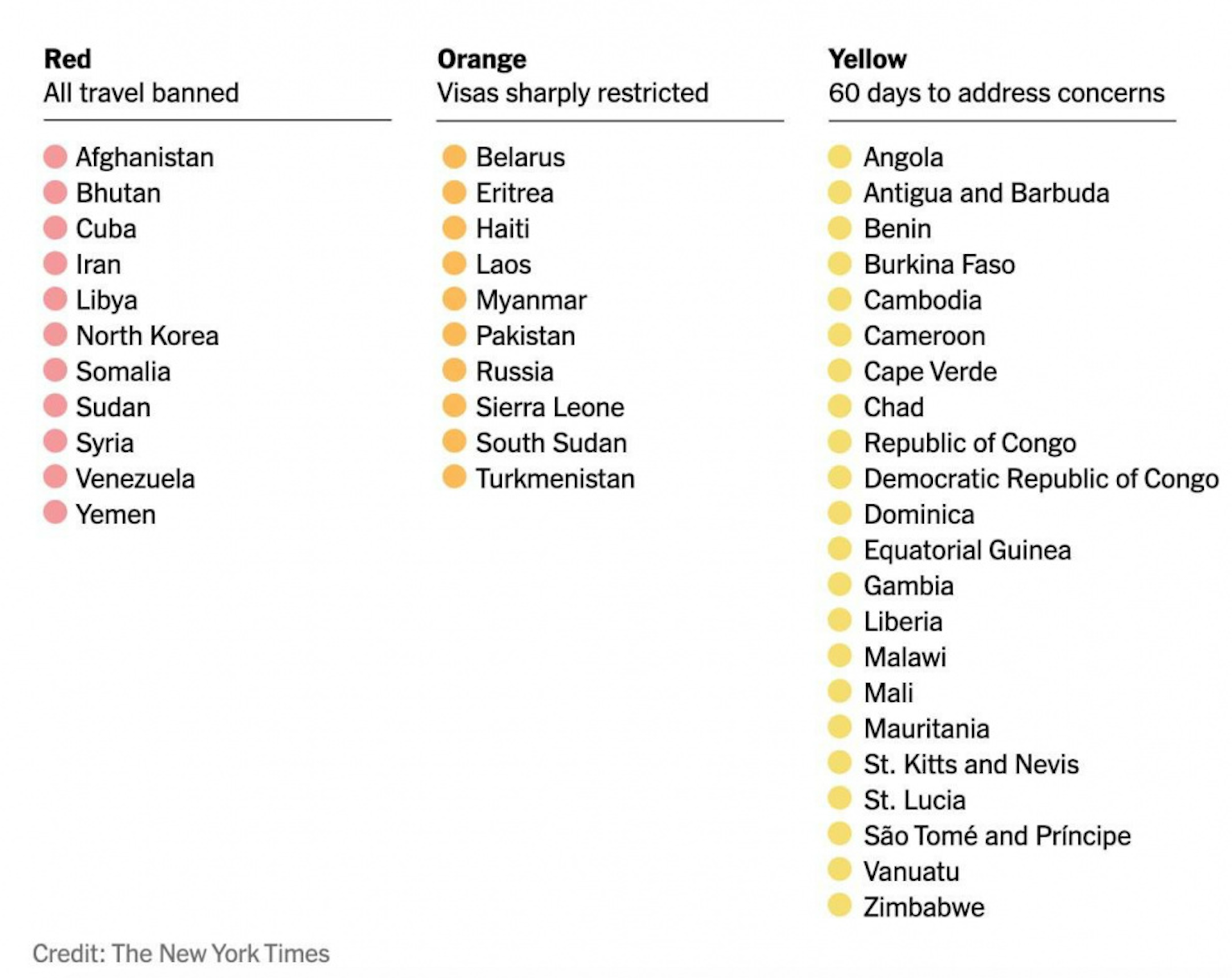 «Сары» топқа 22 ел кіреді, олардың азаматтары «АҚШ билігі көрсеткен» проблемаларды 60 күн ішінде жоюы керек. Әйтпесе, олар жоғарыда аталған топтардың біріне қосылуы мүмкін.