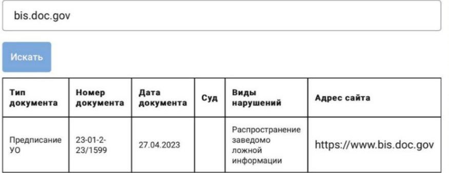 Уәкілетті орган бұйрығымен «Қасақана жалған ақпарат таратқаны үшін» АҚШ Сауда министрлігінің Өнеркәсіп және қауіпсіздік бюросының сайты бұғатталды.