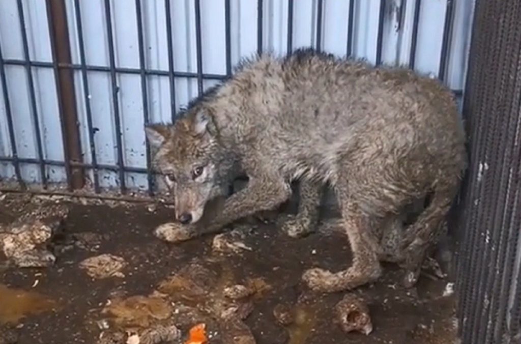 Ерікті Евгения Калиниченко Instagram парақшасында жануарларды ұстау шарттары туралы видео жариялады. Қасқыр қорқынышты, арық және лас көрінді.