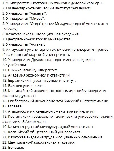 Бұған дейін әлеуметтік желілерде жабылуы мүмкін деген университеттердің тізімі жарияланған еді.