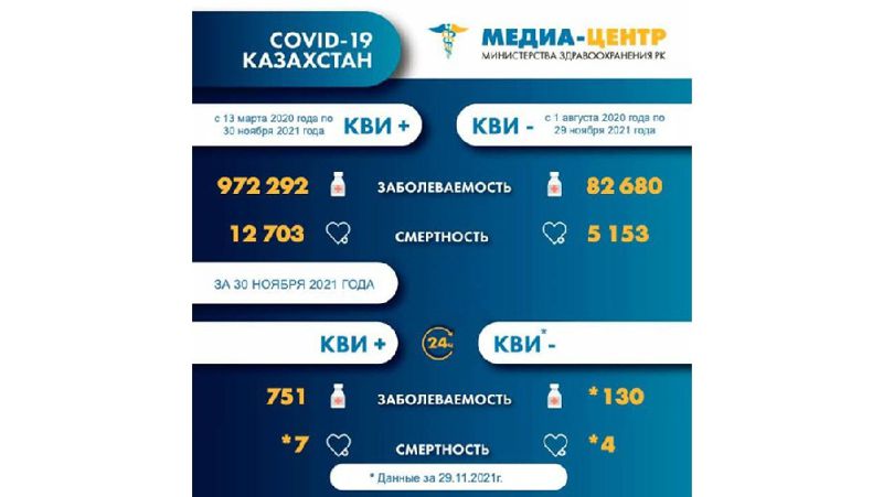 2021 жылғы 1 желтоқсандағы жағдай бойынша Қазақстан Республикасындағы коронавирустық инфекцияны жұқтыру көрсеткіші туралы ақпарат жарияланды.