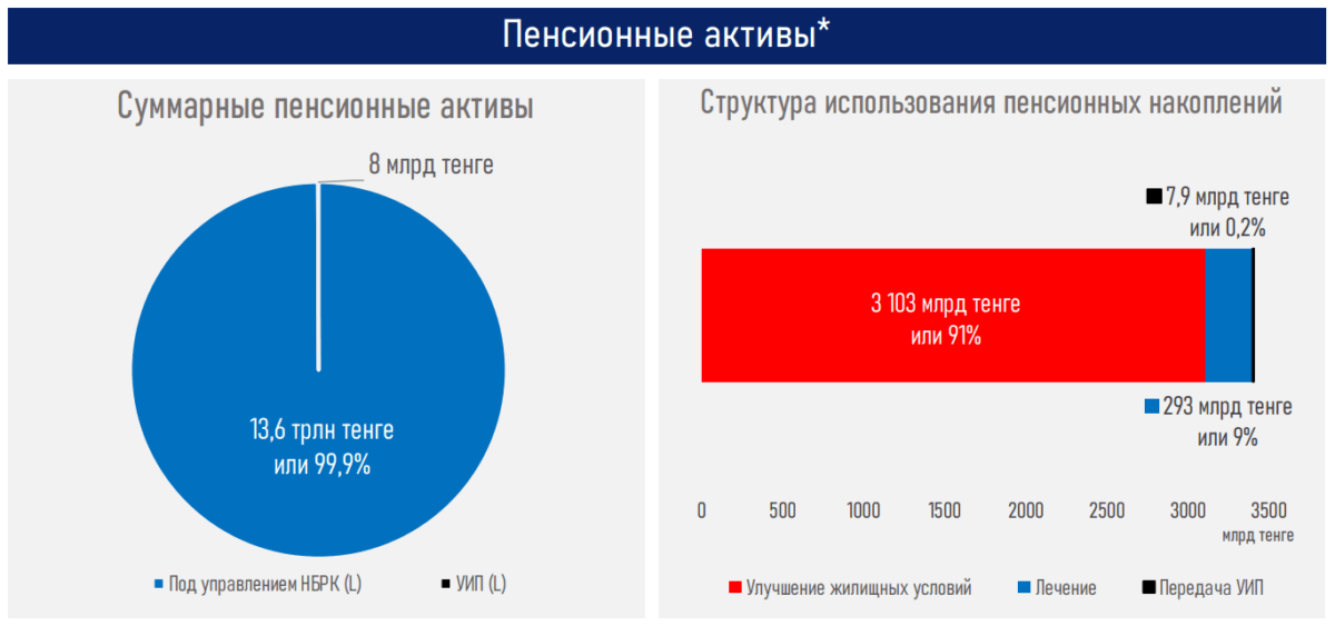 2022 жылғы 1 наурыздағы жағдай бойынша БЖЗҚ-дан 3,4 трлн зейнетақы төлемдері алынды. Зейнетақы портфелін Ұлттық Банк және Инвестициялық портфельді басқарушы (IPM) басқарады.