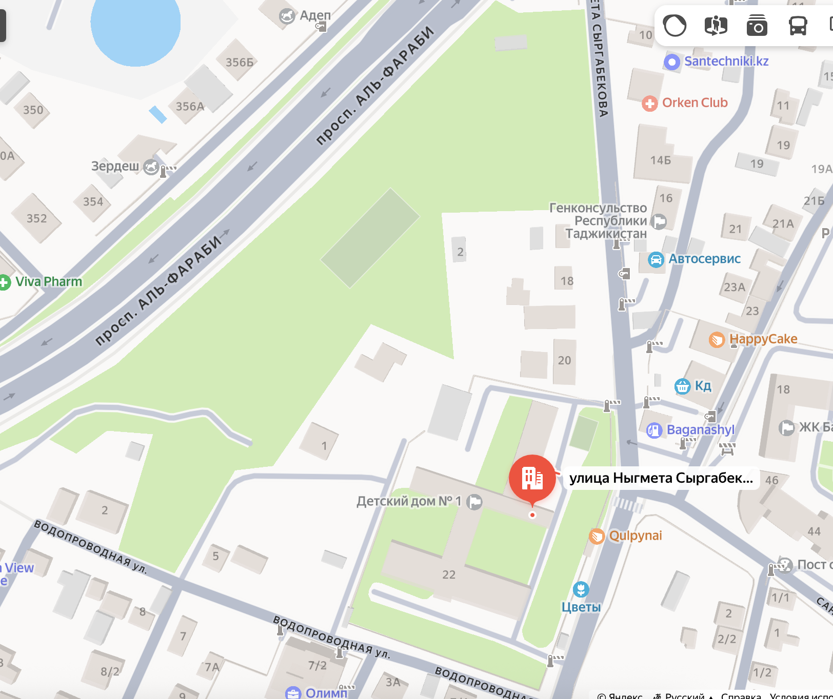 Үлкен жекеменшік сектор қай жерде орналасқан десеңіз, балалар үйі Әл-Фараби — Сырғабеков — Водопроводная көшелерінің үшбұрыш болып қиылысып жатқан жерінде орналасқан.