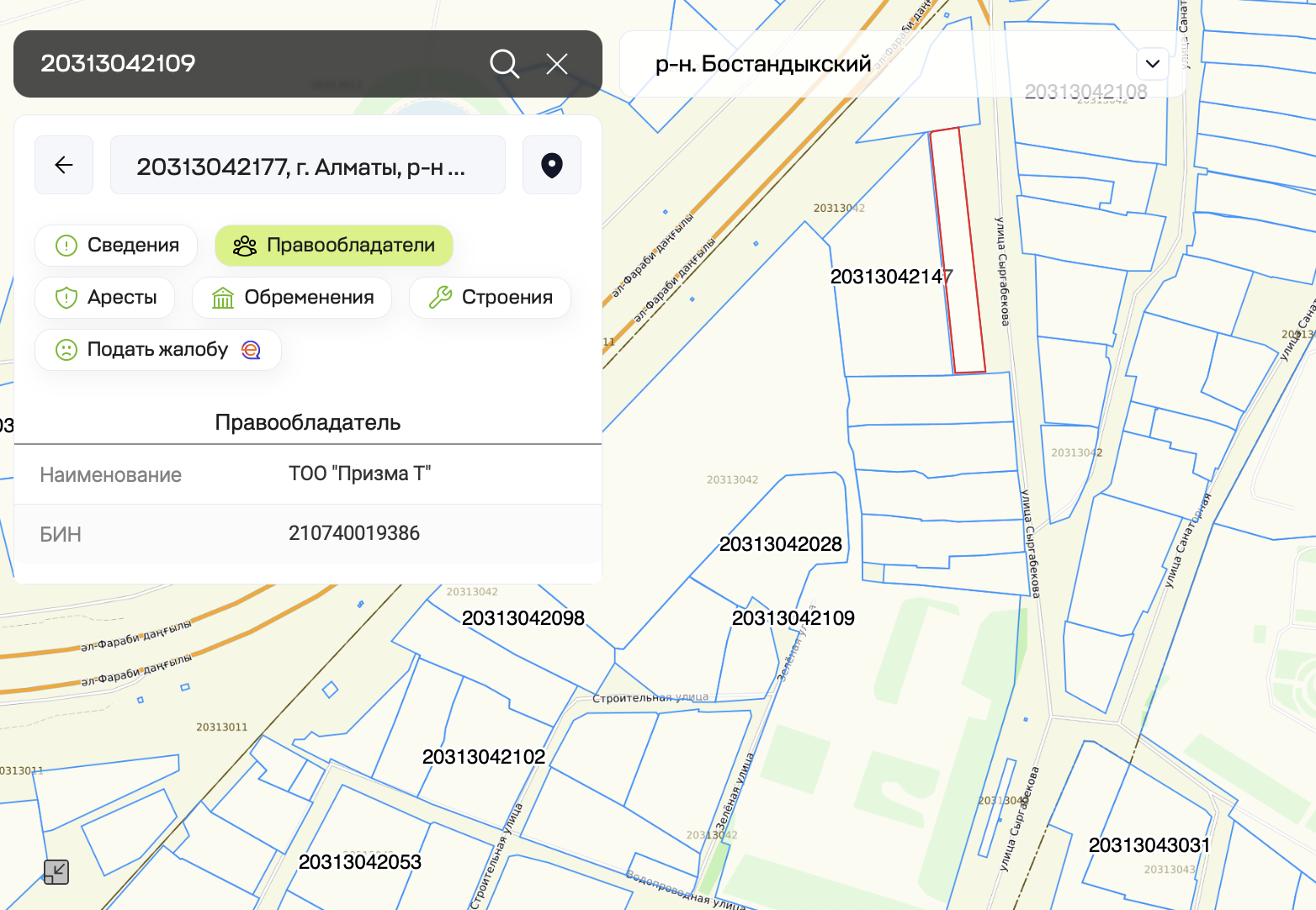Жердің сатып алынғаны түсінікті. Бірақ кадастрлық карта бойынша біртұтас қоршаумен сызылған бөліктердің басым бөлігі «Призма Т» ЖШС иелігіндегі шекара маңындағы бөлікті қоспағанда бұрынғыша жекеменшік жер.