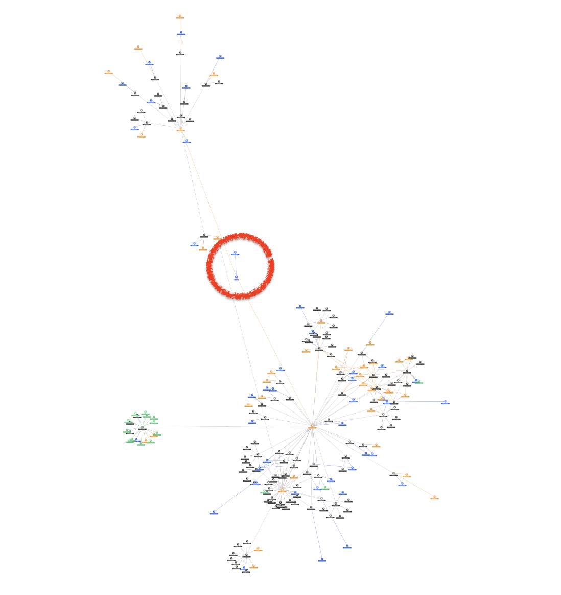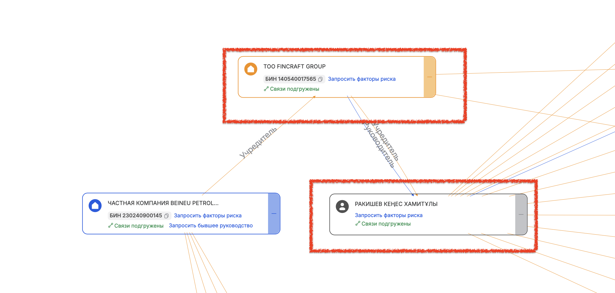Байланыс картасында компаниялар желісі қалай көрінетін түсіріп салып отырмыз (Omirex компаниясы қызыл түспен белгіленді).