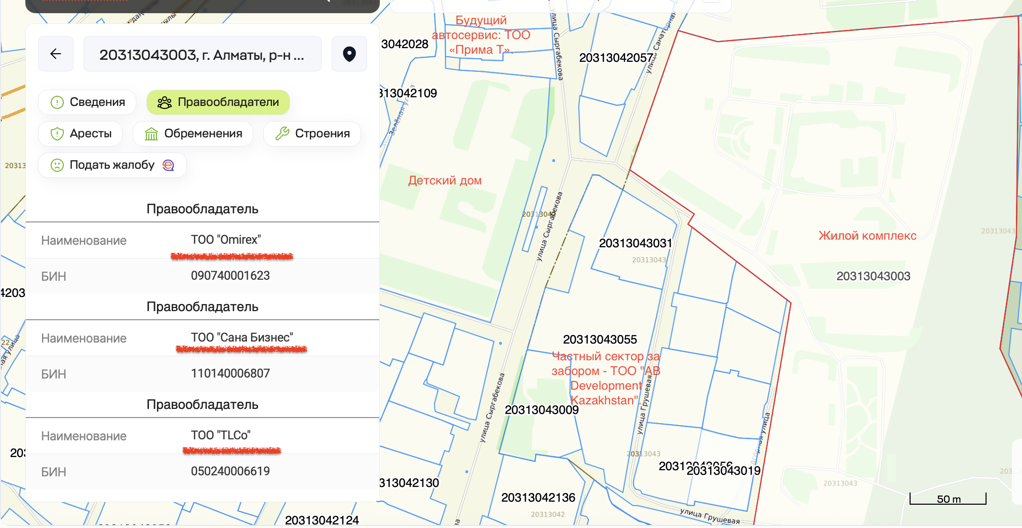 Қоршаудың артындағы учаскелердің астындағы жер «AB Development Kazakhstan» ЖШС-не тиесілі. Компанияның құрылғанына бір жылдан енді асты. Бұл компания тұрғын үй құрылысымен айналысады.