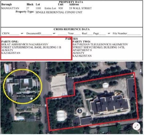 «Выход к морю» Telegram арнасының хабарлауынша, Болат Назарбаевтың Алматыдағы Атакент көрме алаңы маңында 72 сотық (0,72 гектар) жерге салған зәулім үйі бар екен.