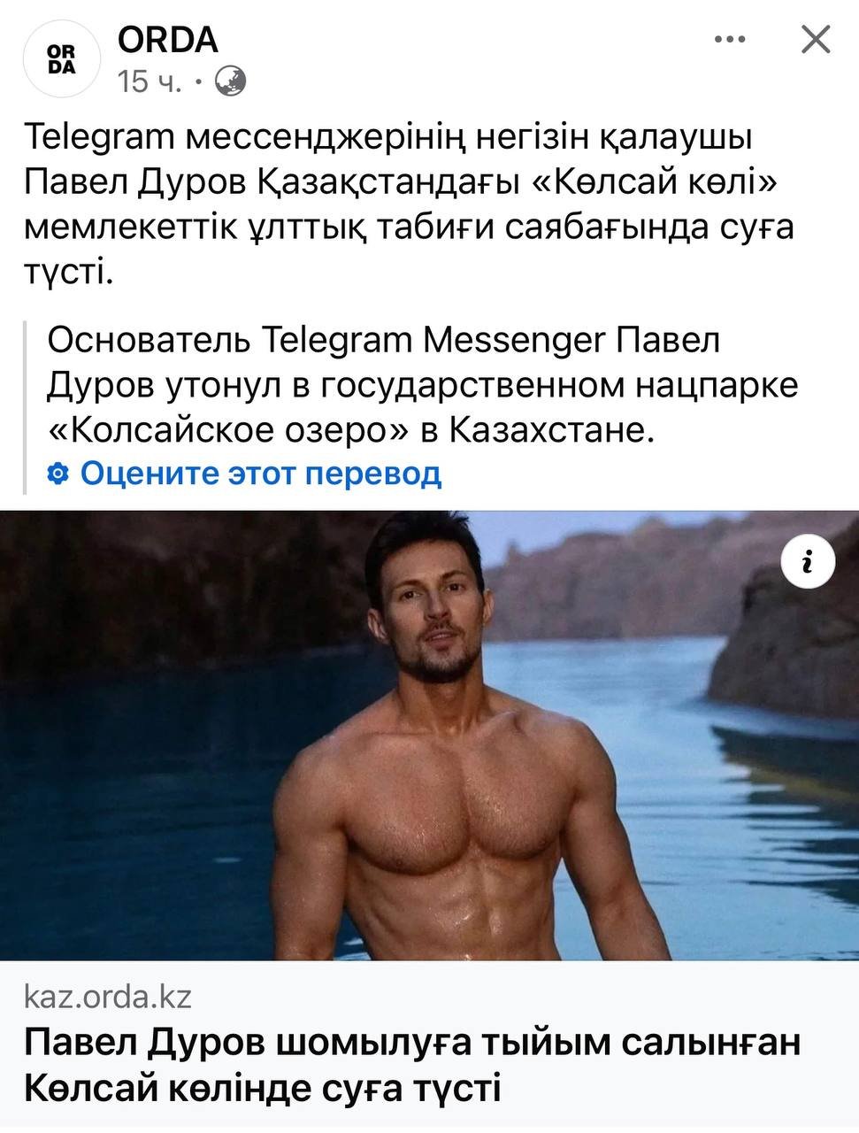 Бұл туралы ақпарат берген Orda редакциясының ресми Facebook парақшасында қазақша жазылған мәтінді орысша аударған Meta AI Дуровты «суға түсті» емес, «суға батып кетті» деп аударған.
