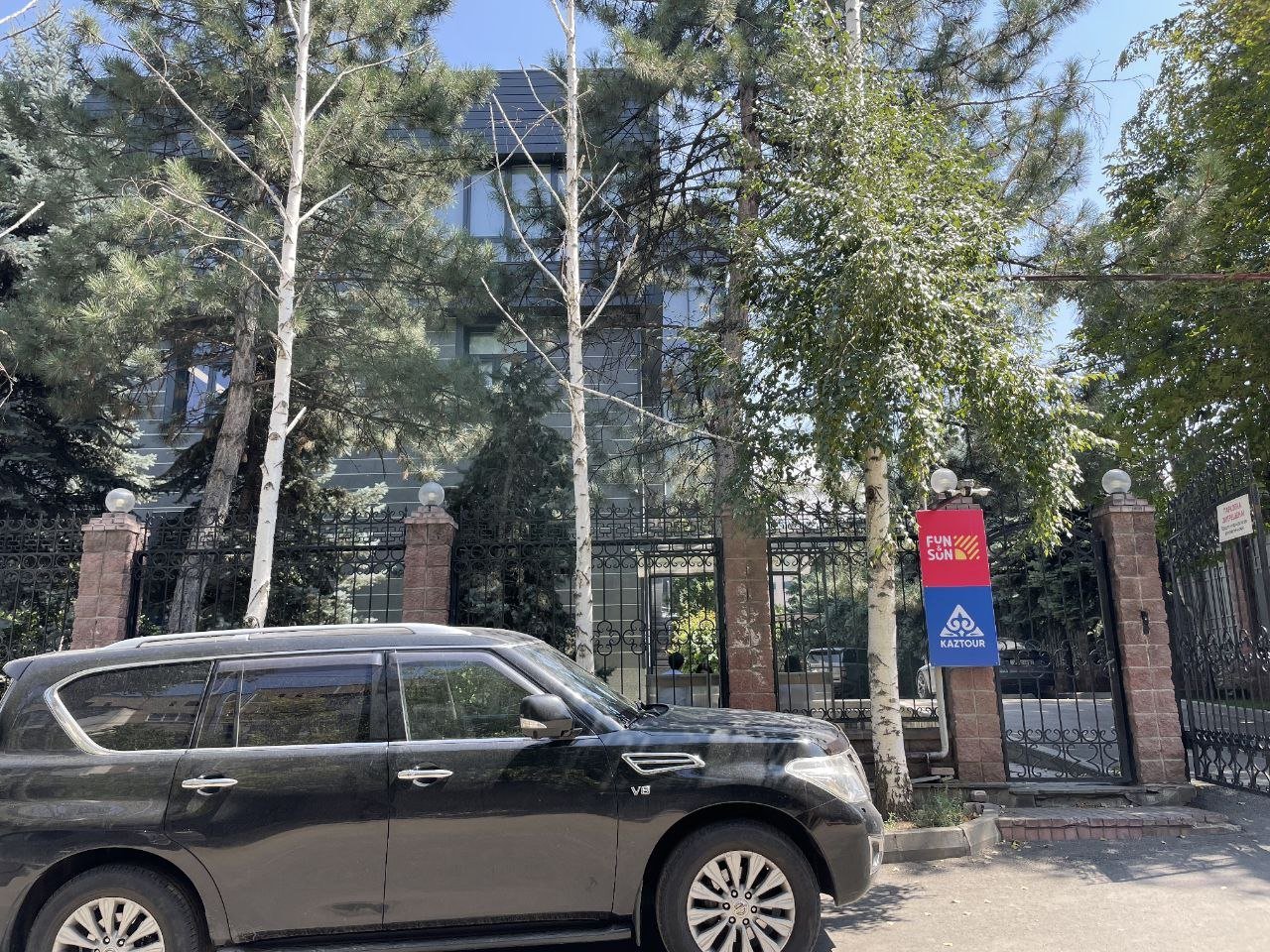 Осыдан кейін тілшіміз ғимаратты барып көрді. Шынында да орталық қызу жұмыс істеп тұр екен. Қоршауында FUN&SUN Kazakhstan мен Kaztour Corporate деген тақтайшалар ілулі тұр.