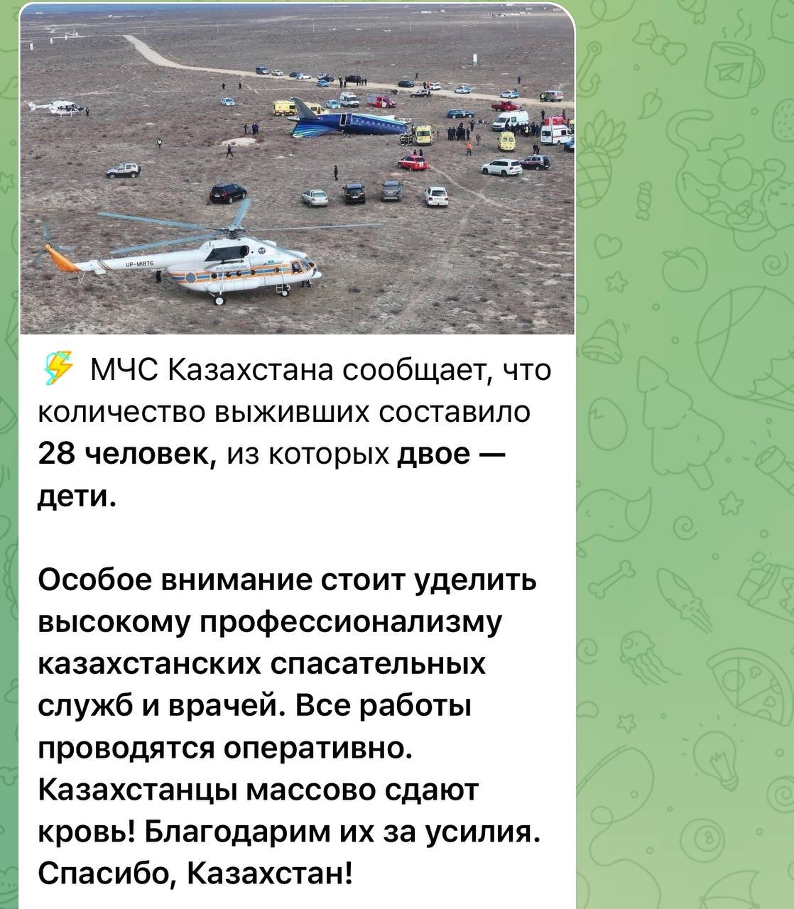«Ақтау қаласындағы қазақ ағайындар ұшақ апатынан аман қалғандар үшін қан тапсыру үшін кезекке тұр. Рақмет сіздерге!» деп жазды ол.