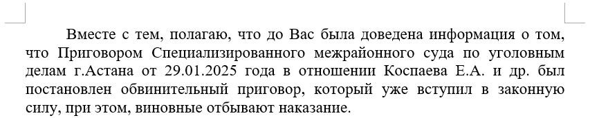 «2025 жылғы 4 шілдеде Болат Әбішұлы Назарбаевтың мұрагерлері атынан мені кәсіпорын құжаттарын өзгертуге мәжбүрлеу туралы хат алдым. Олар өз құжаттарын 2024 жылғы 31 шілдеде алғанын көрсеткен. Бұл ненің негізде? Менің ойымша, мұрагерлер алдын ала тергеу барысын біледі, өйткені құқыққа кіріскеннен кейін бір жыл күткен. Егер олардың талабын орындасақ, мен өз үлесімді қайтару мүмкіндігінен айырыламын» деп жазды Абдуллаев.