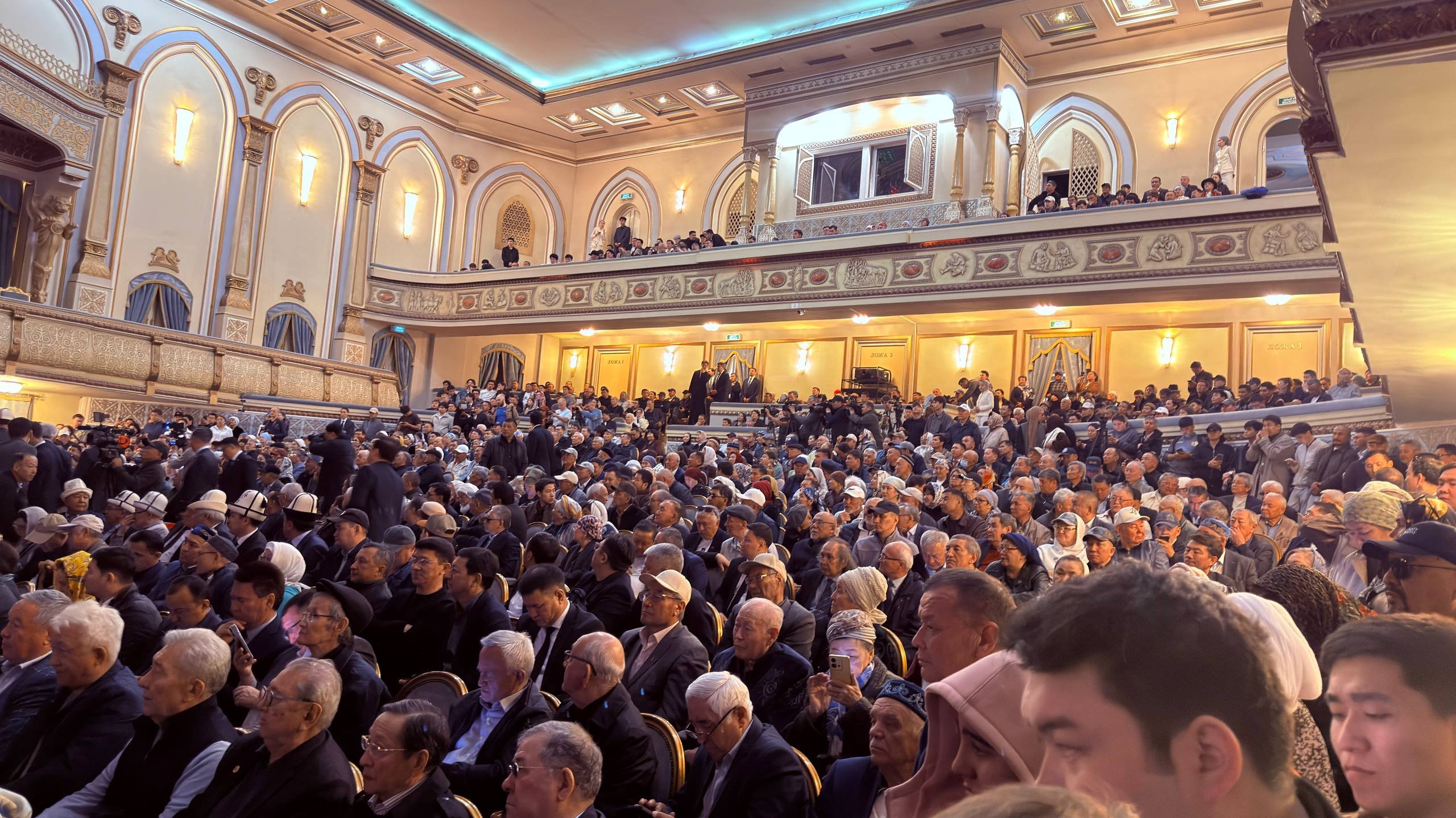 Жиынға көптеген жазушы, қоғам қайраткерлері жиналған. Сондай-ақ, көрші елдердің де ақын-жазушылары келген. Театр толы адам, ақынмен қоштасуға келіп жатқан адам қарасы көп. Залда қаралы музыка ойнап тұр. Шахановты ақтық сапарға шығарып салуға зиялы қауым өкілдері мен қоғам қайраткерлері, үзеңгілес жолдастары келген. Ақынға әнші Димаш Құдайберген де келіп, тағзым етті.