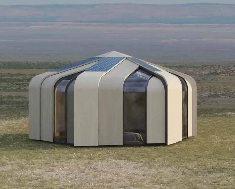 «Киіз үйдің ішкі құрылымы 25 шаршы метр аумақта жатын бөлмелер мен жұмыс аймақтарын шеңбер бойымен, ал ас үй мен әжетхананы орталыққа шоғырландыру арқылы стратегиялық түрде орналасқан» деп жазылған Design Educates Awards 2025 байқауы сайтында.