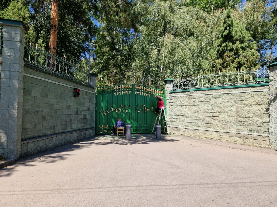 Монолитті қақпаларға жақындап көрдік. Қақпа жақтан күзетші шығып, бір-екі ауыз сөз алмасқан бойда журналистерді қуып жіберді.