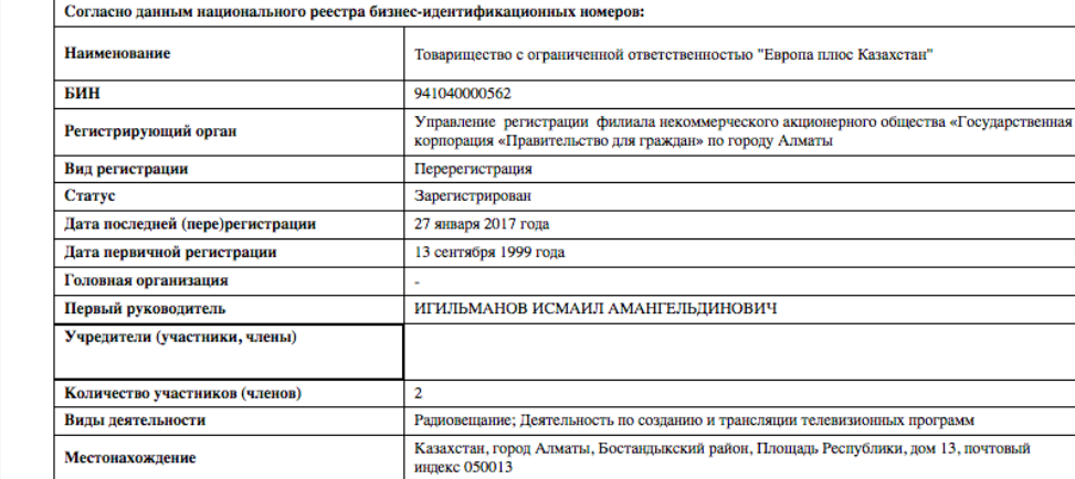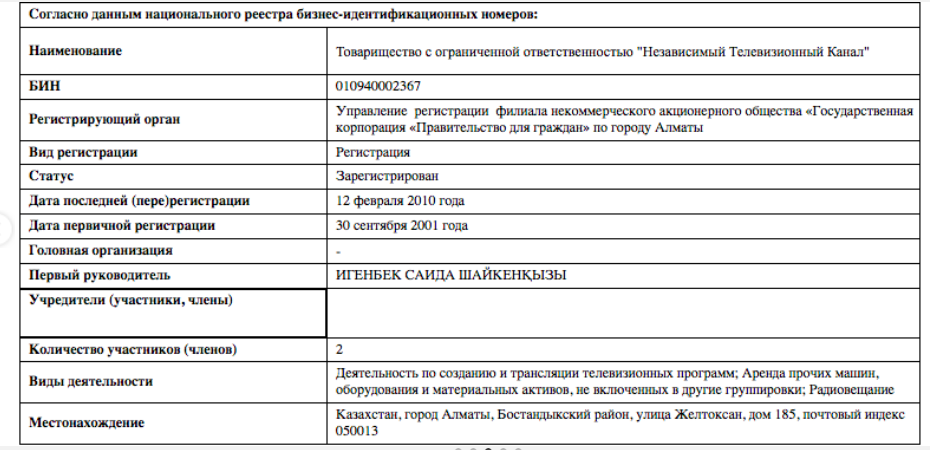 «Жоғарыда айтылғандардың негізінде құрылтайшылар туралы мәліметтер олардың жеке басын куәландыратын мәліметтерді (жеке куәлік деректері, жеке сәйкестендіру нөмірі, туған күні, азаматтығы және т.б.) қоспағанда, қызметтік, коммерциялық немесе заңмен қорғалатын өзге де құпияны құрайтын мәліметтер болып табылмайды» деп жазды Әділет департаменті.