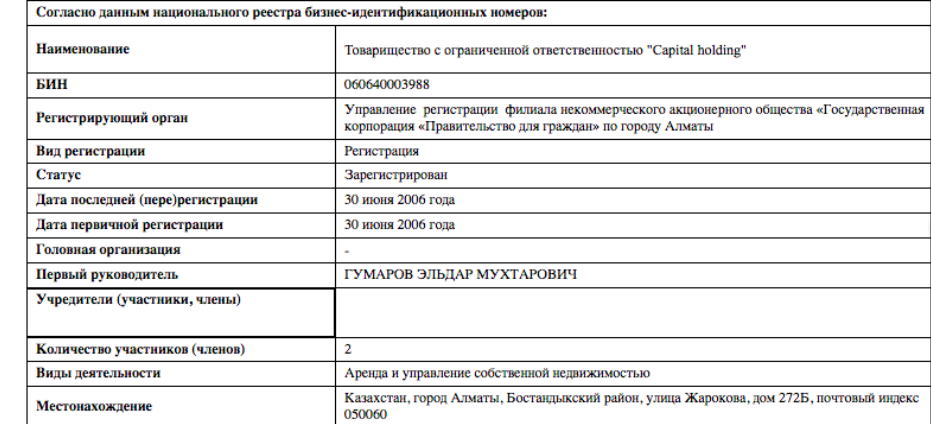 Дегенмен, қазір egov порталында заңды тұлғалар туралы ақпаратты алу кезінде төмендегі скриншоттарда көрсетілгендей «құрылтайшылар» қатарында ештеңе жазылмаған.