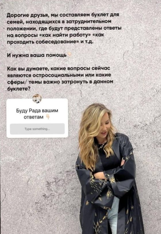 Аида Әлиева қиын жағдайда қалған Қазақстан халқына көмектесуді жөн санапты. Нұрәлі Әлиевтің жұбайы қай жерге және қалай жұмысқа тұруға болатынын, жұмыс берушімен қалай әңгімелесу керектігін үйретуге уәде береді. Ол ақылы болуы мүмкін кітапшаның шығарылуы туралы Instagram парақшасында жариялады.