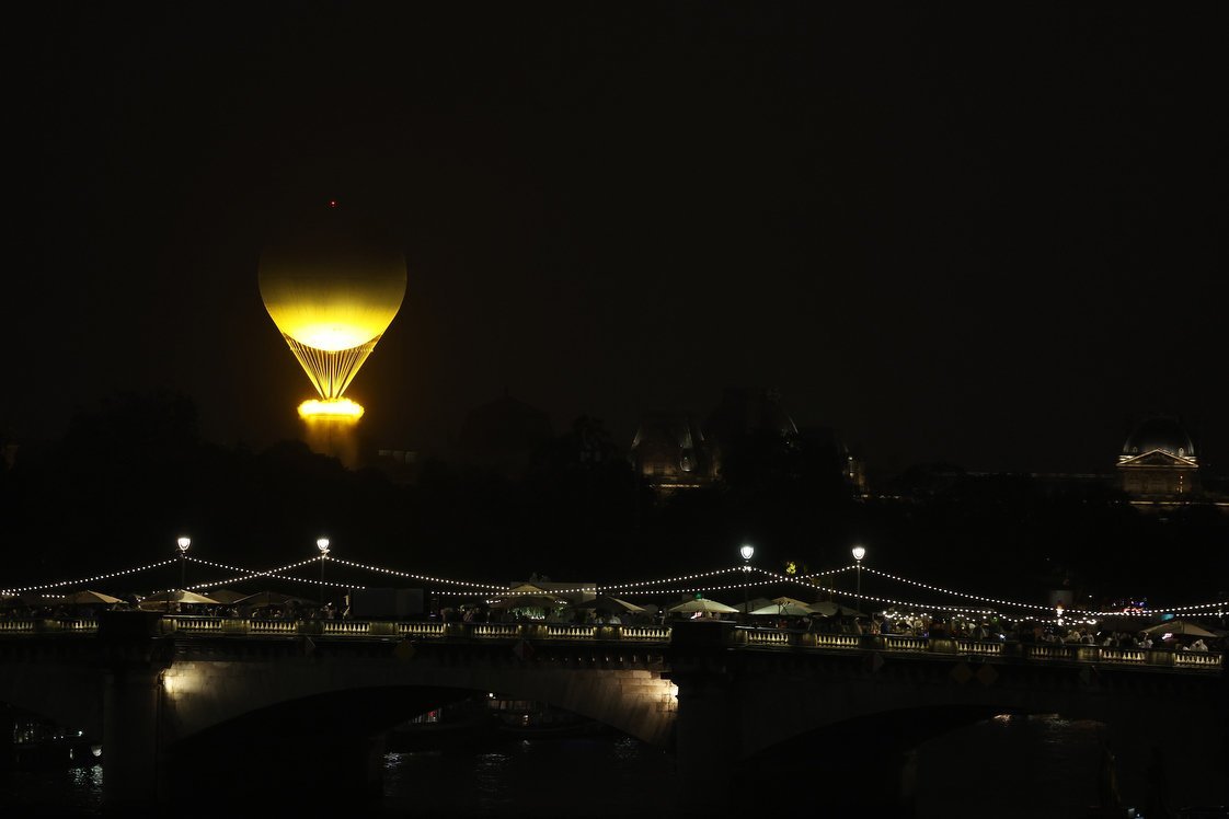 Олимпиада алауын дзюдошы Тедди Ринер мен желаяқ Мари-Жозе Перек жақты, ол артынша шармен француз астанасының аспанына көтерілді. Бұл 1783 жылғы оқиғаларға сілтеме - дәл сол кезде француз Джозеф-Мишель мен Жак-Этьен Монгольфье ойлап тапқан әуе шарымен алғашқы ұшу болды.