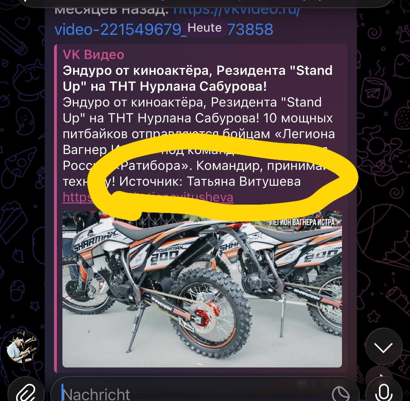 Нұрлан Сабуровтың «Вагнер Истра легионы» жауынгерлеріне он питбайк жібергені туралы ақпараттан кейін бұл «сыйлыққа» қатысты барлық бейнежазбалар жойылды, деп хабарлайды Orda.kz.
