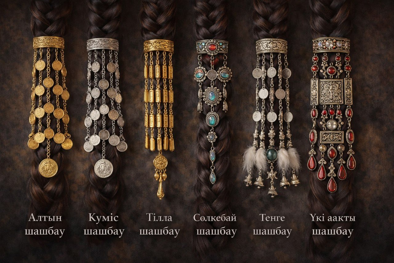 «Қыз баланың шашын тарау үшін сиыр мүйізінен жасалған тарақ қолданылған. Мұның өзі табиғилық пен ұқыптылықтың белгісі саналған. Шашқа тағылатын әшекейлердің бірі – шашбау. Атауының өзі «шаштың бауы» деген мағынаны білдіреді. Оның ең қарапайым түрі матадан тігілсе, күрделі нұсқаларына күміс, алтын теңгелер, тиындар мен маржандар тағылған. Шашбау өрілген бұрымның ұшын бекітіп, шаштың көркін ашатын негізгі сәндік бұйым болған», – деді Меруерт Егізбаев.