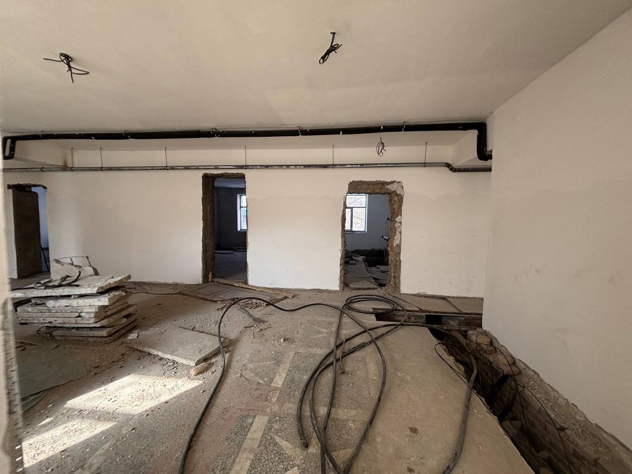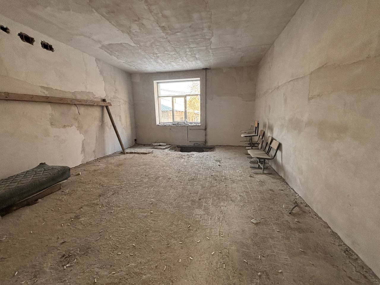 Осыған байланысты, құрылысы бітпей тұрған ғимараттың ауданы 6700 шаршы метр. Балаларға жуынатын жағдай жасалынбаған. Балалар қайда жуынады деген сұрағымызға жұма күні балалар үйіне қайтады, үйінен жуынып келеді деген жауап алдық.