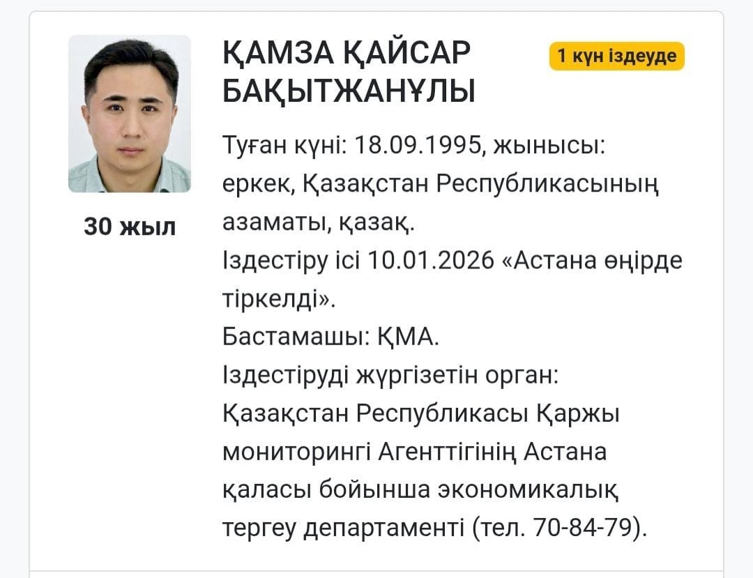 - Танымал блогер Қамза Қайсар іздеуде жүр