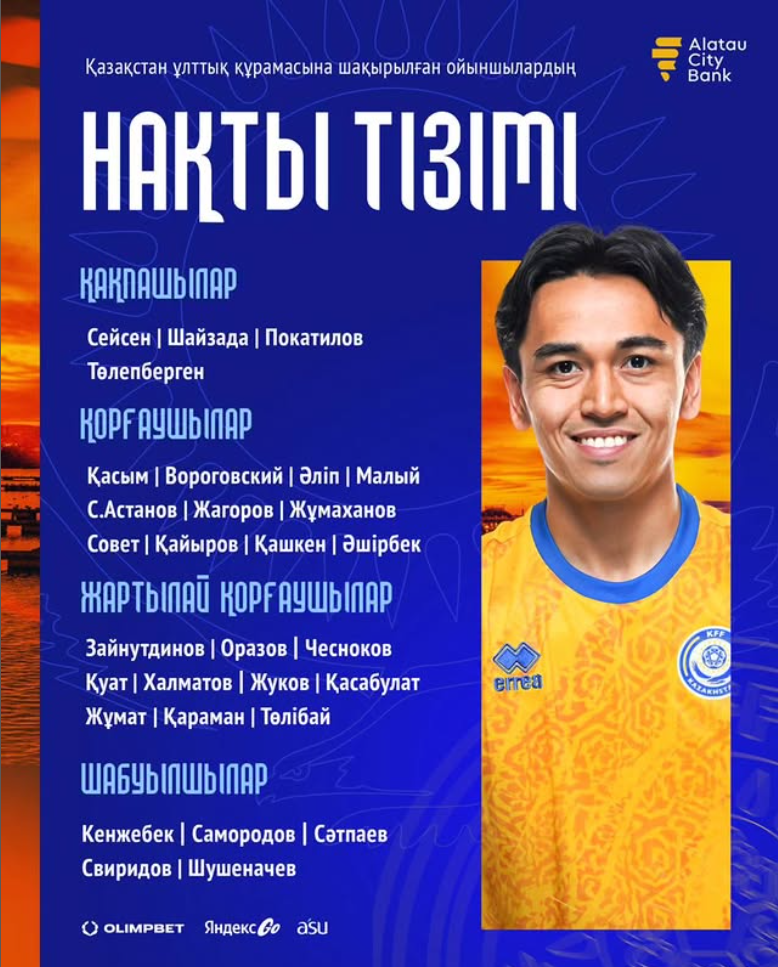 Қазақстан Ұлттық құрамасы алдағы болатын Солтүстік Македония мен Лихтенштейнге қарсы ойында шығатын өзінің құрамын жариялады.