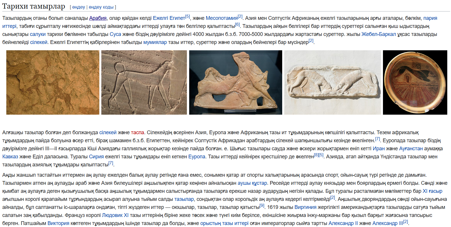 - Уикипедиядағы даулы тұжырым: Тазыны арабтар әкелді ме?