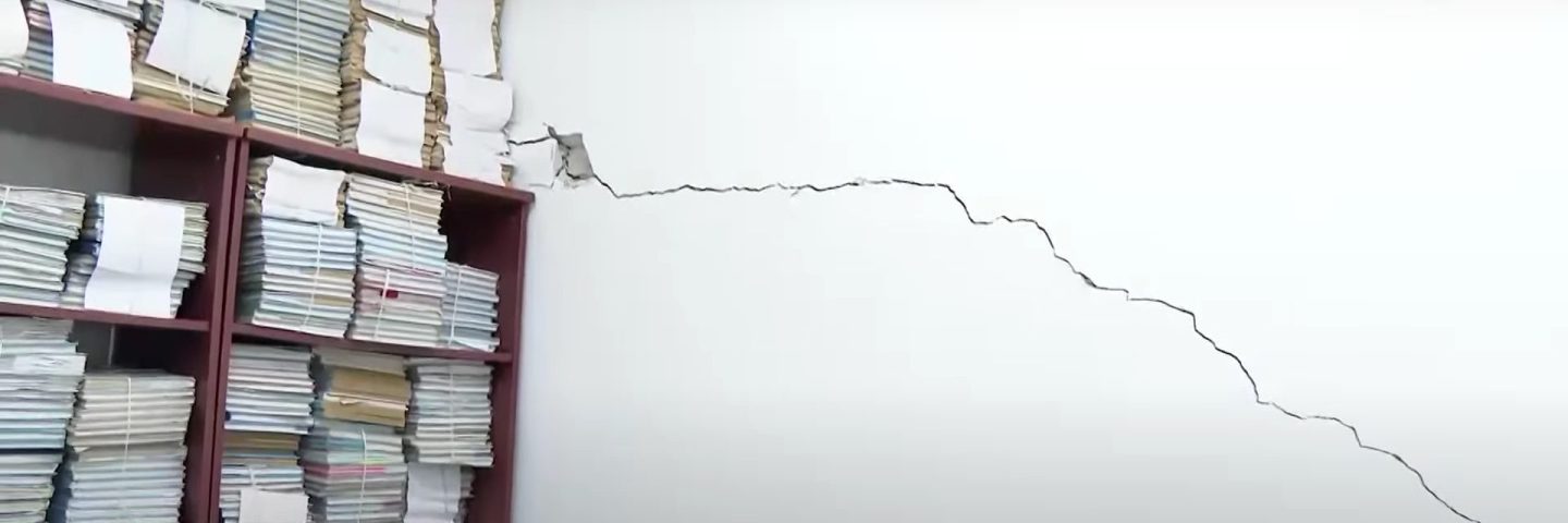 Қабырғалар ағаш еденнен 15 см көтеріліп кеткен, олардың бойымен жарықтар пайда болған. Мектепке небәрі 8 жыл болса да, мұндағы мәселелер былтыр басталған. Басшылықтың айтуынша, көтеріліп кеткен еден оқу үрдісін тоқтатпау үшін бірден жөнделген. Бұған 9 миллион теңгеге жуық қаржы жұмсалған. Дегенмен мәселенің бұнымен шешілмейтіні анық.
