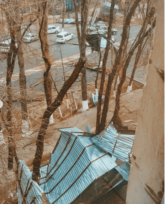 Ал, әлеуметтік желілерде Таразда түсірілген видеолар пайда болды. Кадрлардан қатты желдің үйлердің шатырын ұшырып әкеткені көрсетілген. Сонымен қатар, шаң мен қарлы боран әсерінен қалада көру мүмкіндігі азайып отыр.